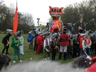 Here the rats are tying the cat to the stake.