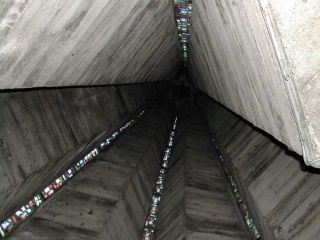 This is a good view of the poured concrete walls. It was very different from any other church we had seen.