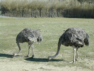 There were many ostriches wandering around the grounds.